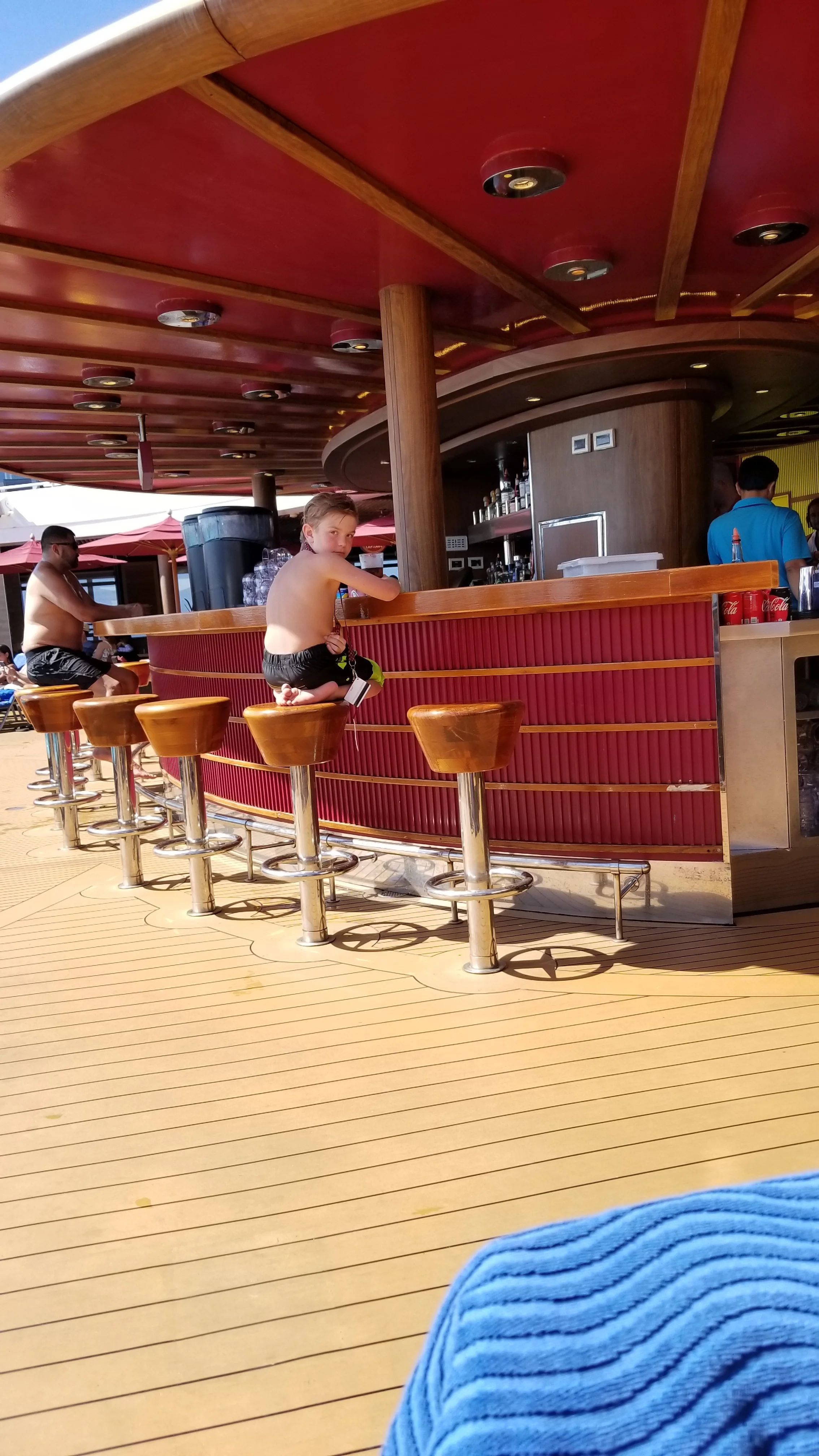 This was our second cruise so we knew what to expect more and were looking forward to the pools, ice cream, coffee in the AM and all the shows and movies on the deck.